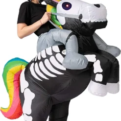 Spooktacular Adult Inflatable Skeleton Unicorn Ride on Costume – Group Costumes