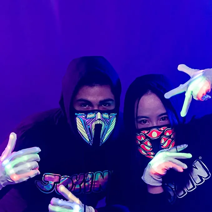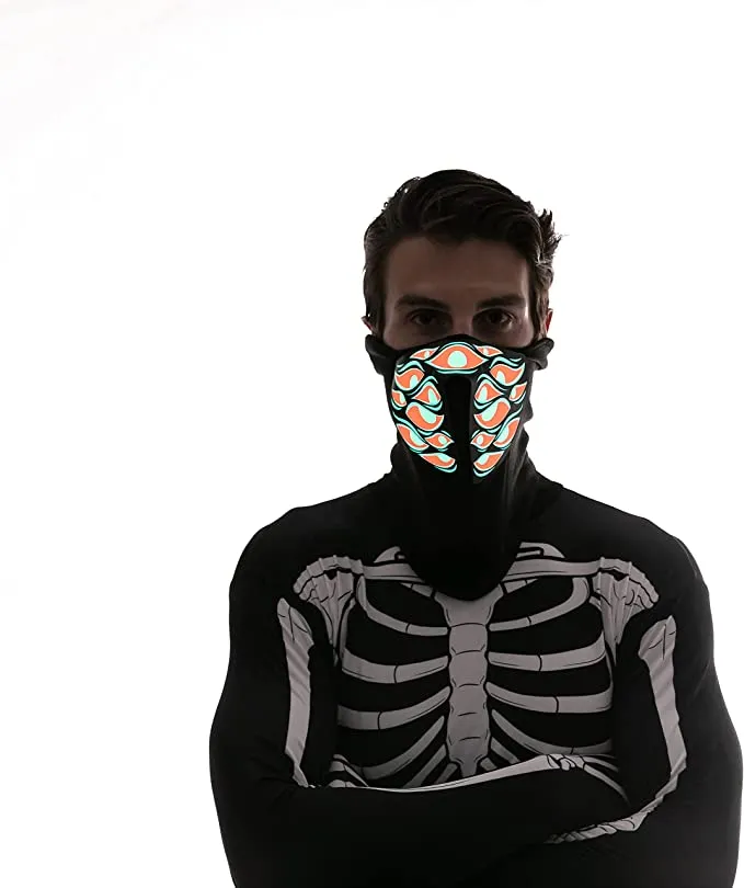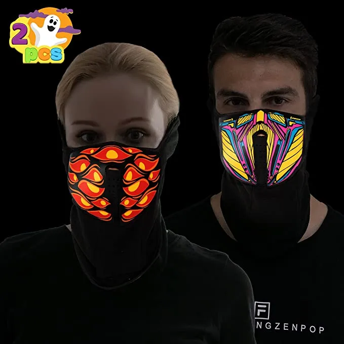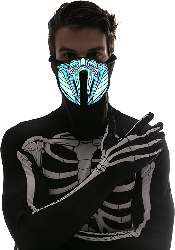 - Dress up with our Halloween monster light-up mask to scare your friends, and create a spotlight in any Halloween event. The lighting function operates by 2 AA batteries (not included), self-adhesive stickers make the mask able to fit all adults!