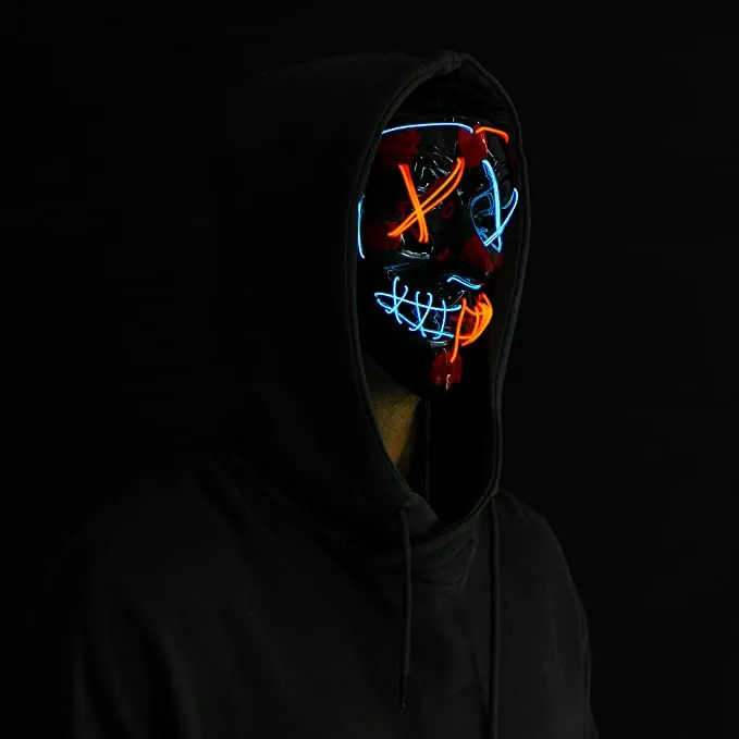 Masks with LED Halloween mask as this is a great accessory for various holidays, costume parties, and other festive events. LED masks also have lights that can add interesting effects to your outfit. Your murderous mask is the only accessory you need! This black plastic mask has wire stitch detail over the eyeholes and mouth that glows in the dark. The mask includes a battery pack with demo batteries. Your friends may scream when you leap at them from dark corners, but they’ll have to admit that your halloween mask is memorable!