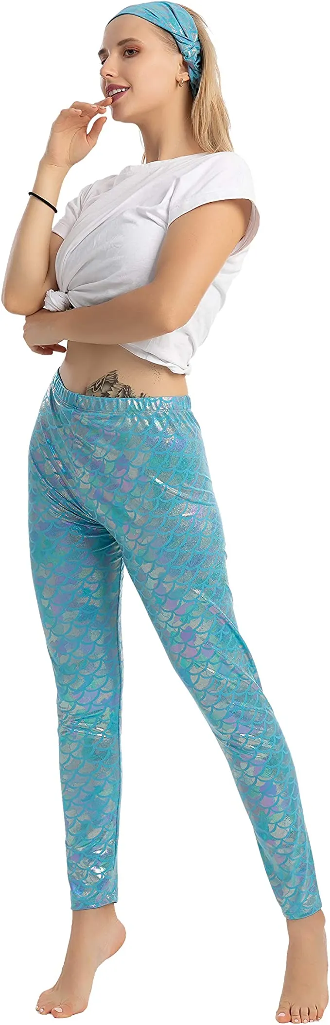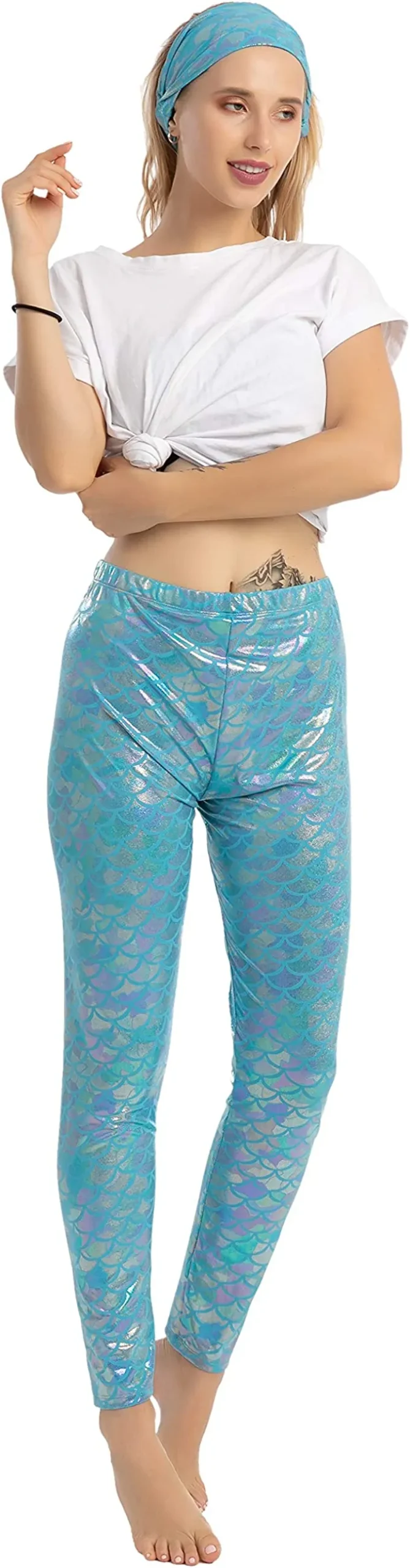 • This Comfortable Halloween Mermaid Leggings and Sequin Headband Include Adult Women Mermaid Leggings and a Mermaid Headband.