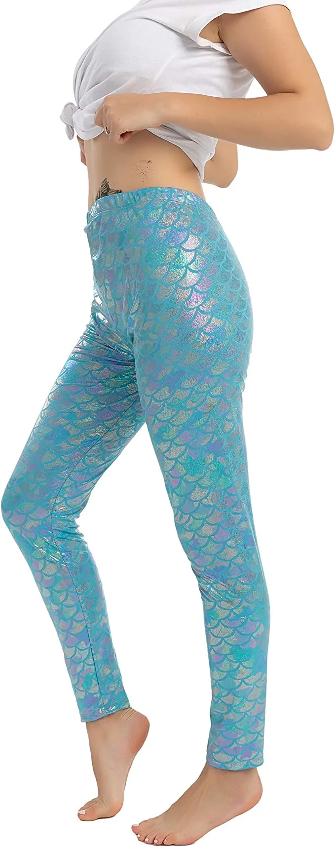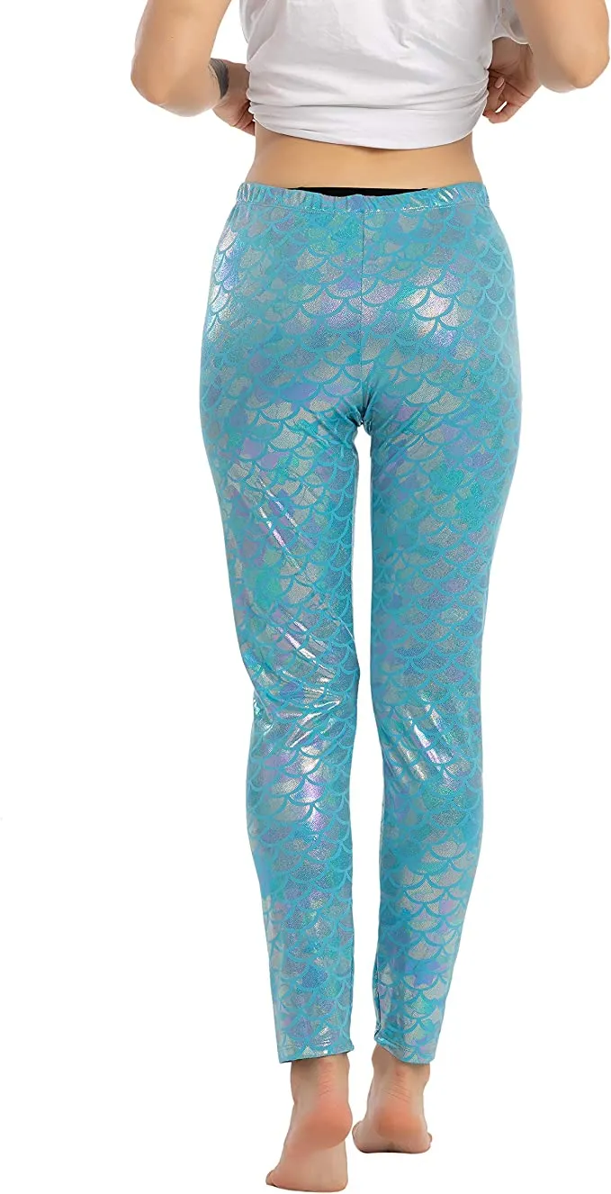 These comfortable Halloween mermaid fish scale leggings and Sequin Headband Include Adult Women Mermaid Leggings and a Mermaid Headband. This fish scale leggings set includes a pair of fish scale print leggings and a matching headband. The product is lightweight and comfortable to wear. It’s Super Durable and Superior Quality, Unique, and Stylish Design made out of 90% Polyester. Perfect for Halloween Dress Up Parties, Mermaid Costume, Mermaid Girl Costume, Undersea Adventure Themed Parties, Halloween Costume Dress Up, Mermaid Role Playing, Activity, and More!