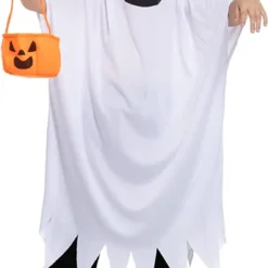 Spooktacular Child Ghost with Pumpkin Bucket Halloween Costume – Kid Halloween Costumes