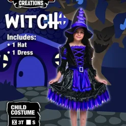 Spooktacular Girls Purple and Black Witch Halloween Costume – Group Costumes