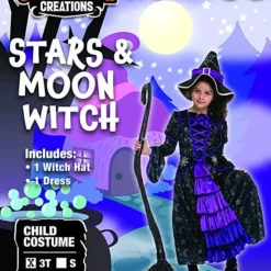 Spooktacular Girls Purple Witch Stars and Moon Halloween Costume – Group Costumes