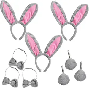- Grey Bunny Ears and Tail Accessories Set includes 3 pcs of fluffy bunny ears headbands, 3 pcs of bow ties, and 3 pcs of bunny tails, in a very cute and adorable style. Fits adult and kids.