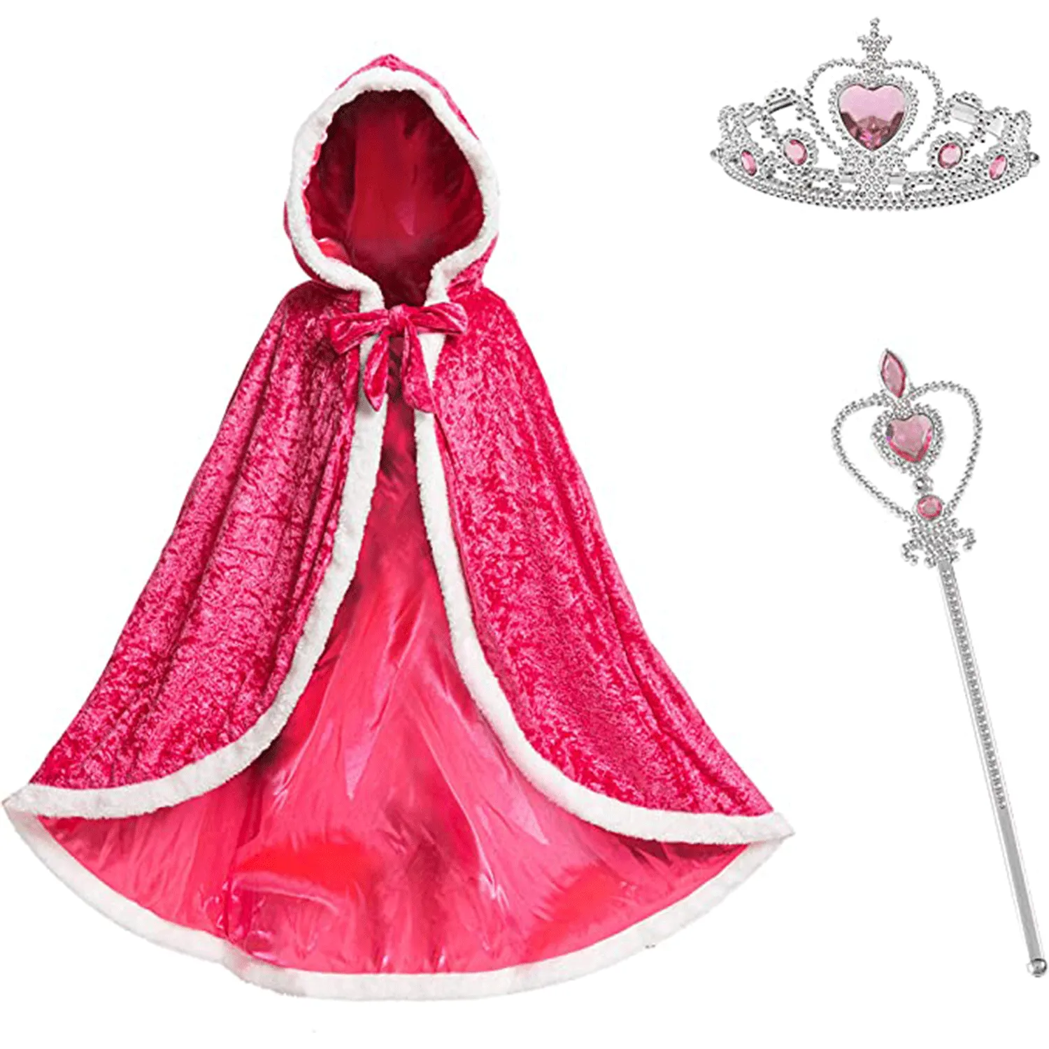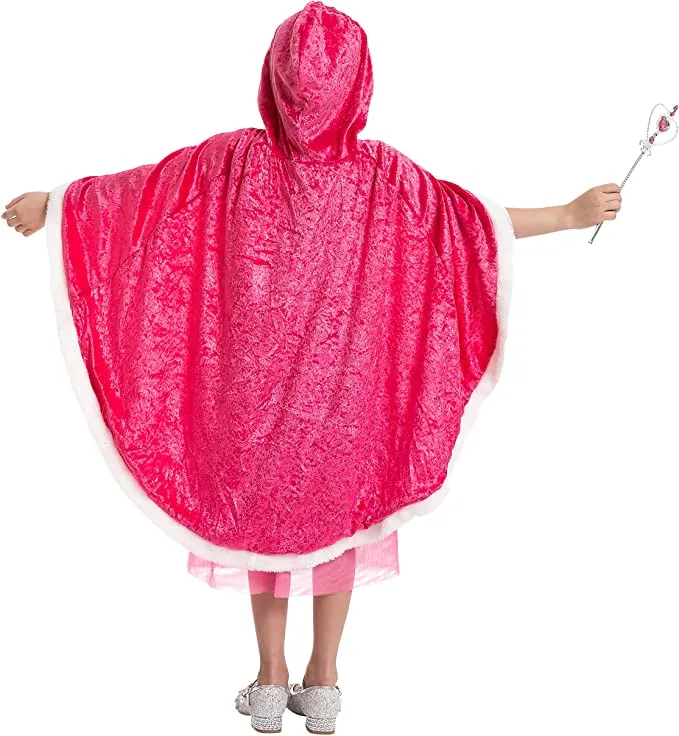 • Princess Dress Up Accessories for Birthday Party and Halloween Party. The cloak is a fur-hooded cape with a fluffy and soft faux fur hooded trim that matches other princess accessories. Durable and made with care. 100% Polyester. Comfortable and soft to wear.