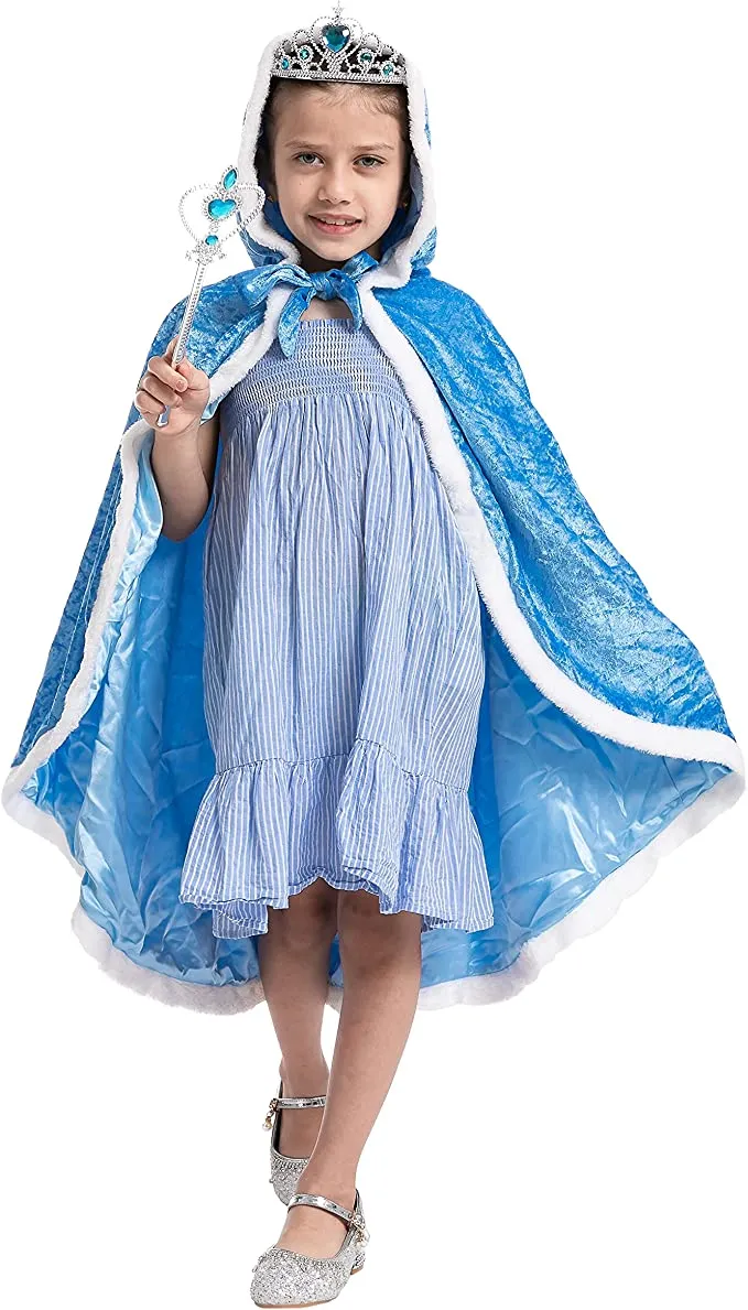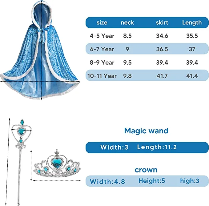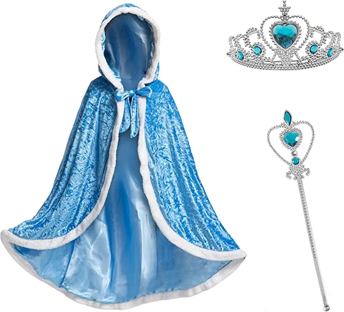 - Our 3 Pack Princess Costume Accessories Set (Blue) includes one self tie closure fluff cloak, one tiara/crown, and a wand.