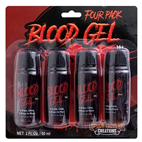 - Including 4 Bottles 2 oz Fake Blood Gel. Our fake blood features an incredibly vibrant blood red color that looks like the real thing.Β