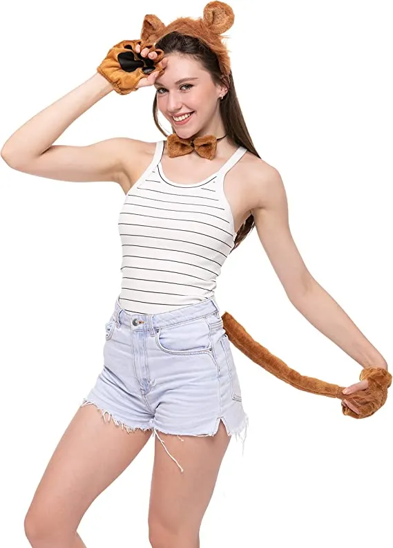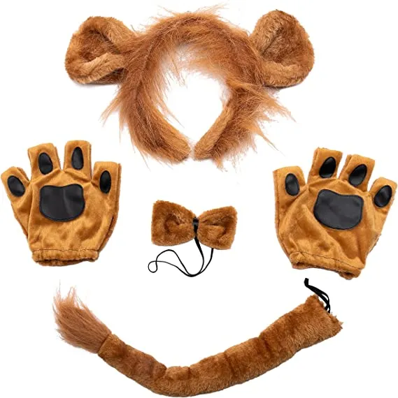 • Lion Halloween Costume accessories Include 1 lion furry mane ears headband, 1 plush tail with a fur tip, 1 bow tie, and 1 pair of lion fingerless paws gloves. It is surely a great addition to make your get-up extra fluffy and cute at Halloween parties.