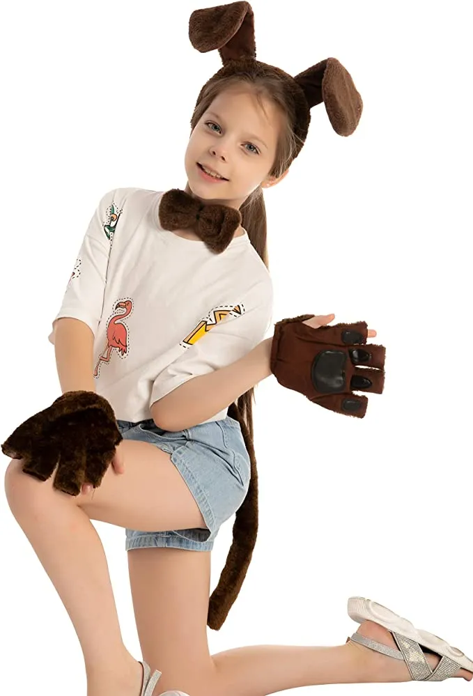 • Dog Costume Accessories include a puppy headband, bowtie, gloves, and tail to spice up your Halloween Costume Party.