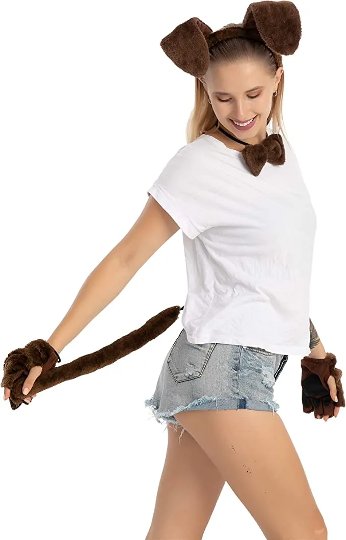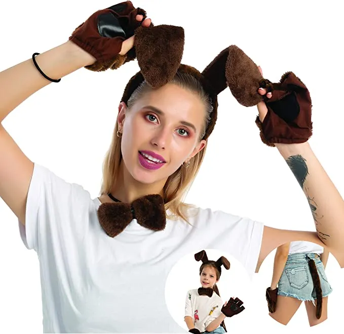 Be a cutie, not a puppy, and come to the Halloween party in our animal costume accessories set! Dog Halloween costume is what we think when we think “everything nice”, slip on the brown headband with the attached floppy puppy ears, and hook on the matching brown tail with the white tip, and you’ll be inspiring adorable comparisons everywhere. Our costume accessories are unique and fun, while successfully maintaining our superior affordability. You’ll be very happy with this product! This animal costume accessories kit is a must-have for all animal role plays as well as Halloween costumes. Dress up with this unique set of accessories and make any party more fun, creative, and full of cuteness!