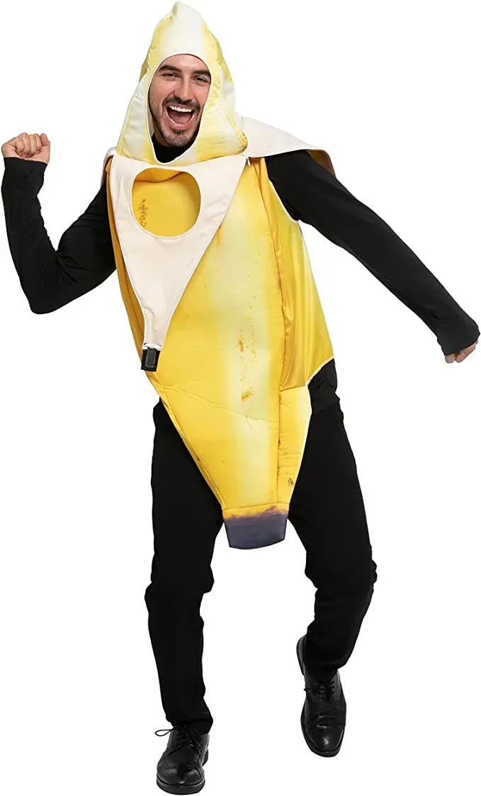 You can also wear this adult banana costume for that annual work costume party that you always feel excluded from. We understand how difficult it is to find a quick and easy costume these days, but this one stands out. Itβs one piece and takes seconds to put on. All of your limbs will be free to move around, and your body will be encased in this yellow fruit. So, get yourself one of these irresistible costumes, and be ready to be the center of any screen or party! Letβs get you a pretty a-peeling costume this year. Letβs get you into a costume! We have plenty of classic costumes, this mens halloween costumesΒ includes a 1 jumpsuit. This is composed of vibrant banana yellow color making it more realistic and pleasing to the eyes.
