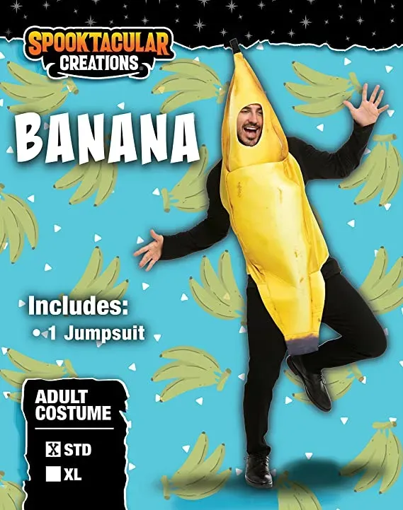 Our basic adult banana costume is a great choice for any costumed event. If you want to spice up an old favorite, try one of our wild variations! For an adult party, the flasher banana is amusing, but if you want to keep it kid-friendly, check out our beautiful banana costumes. Make a gorilla costume with a friend for a humorous pair, or check out our other fruit costumes for a big group outfit. You canβt go wrong with any option!