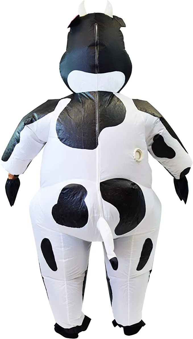 β’ Inflatable Cow Halloween Costume Includes Instruction Sheet, Inflatable Cow Suit, and Air Pump. Air Pump Requires Portable Power Bank or 4 AA Batteries. (Batteries Not Included)