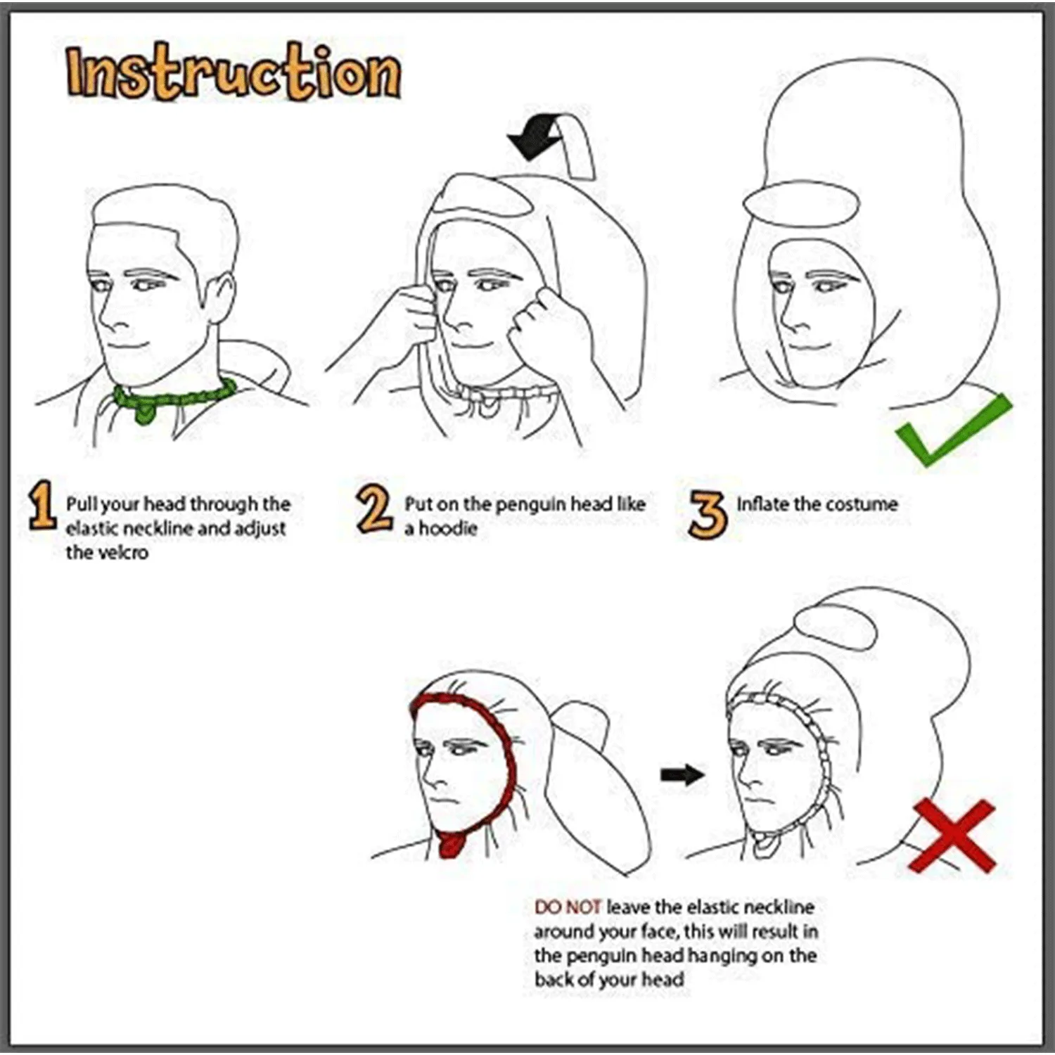 β’ Use the Pocket Located Inside the Costumeβs Legs to Safely Store the Battery Pack. DO NOT put Battery Pack in Your Own Pocket Otherwise, It Gets Overheated. Adjust the Direction of the Fan and Tighten the Drawstrings for the Best Inflating Performance.