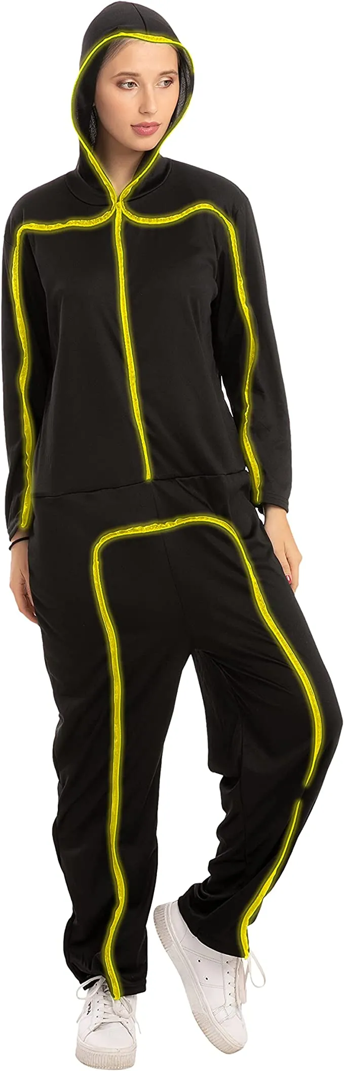 Make your Halloween costume extra spooky with this 100% polyester LED stick figure costume for unisex adults. The hand wash costume comes with wired neon lights, making it glow in the dark. Don’t forget to add our scary horns to complete your spooky look! Halloween is all about dressing up as your favorite character, but with our light-up stick figure costume, you can become the figurative embodiment of horror. This costume will add that extra touch of fright while making it easy to spot in a crowd. As soon as you turn on the battery-operated lights tucked inside this unisex ensemble, it’ll instantly send chills down everyone’s spine!