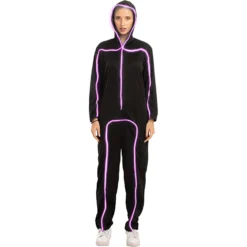 An excellent option to dress up for Halloween and other events is in a light up stick figure costume. Your Halloween party will glow in the dark thanks to the wired neon lights that come with the stick figure costume. Wearing the stick figure costume is fantastic for a school dance or a Halloween party! The stick figure costume has wired neon lights and is made entirely of polyester.