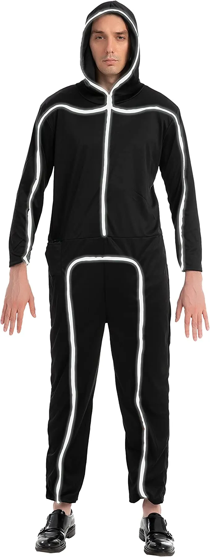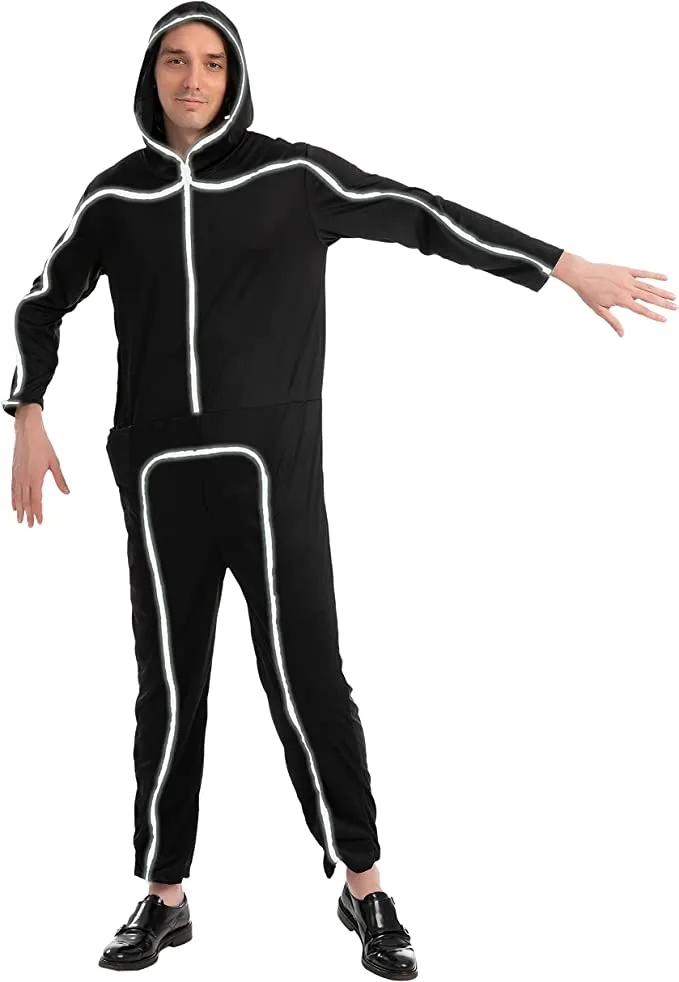 Be the life of any party with our LED stick figure costume. We’re talking about a versatile, easy-to-wear Halloween costume that can be used in its most basic form, but is also capable of so much more—it makes for a great prop for any scary or silly role play idea you can think of. The costume will give you endless hours of light-up fun, so get ready to shine brightly on any occasion! Enjoy your costumes with a bright light-up effect. Great for parties and performances, the stick figure costume offers a unique way to stand out at any event. Dress up as your favorite character or play an interactive game of tag with your friends and family in these fun costumes.