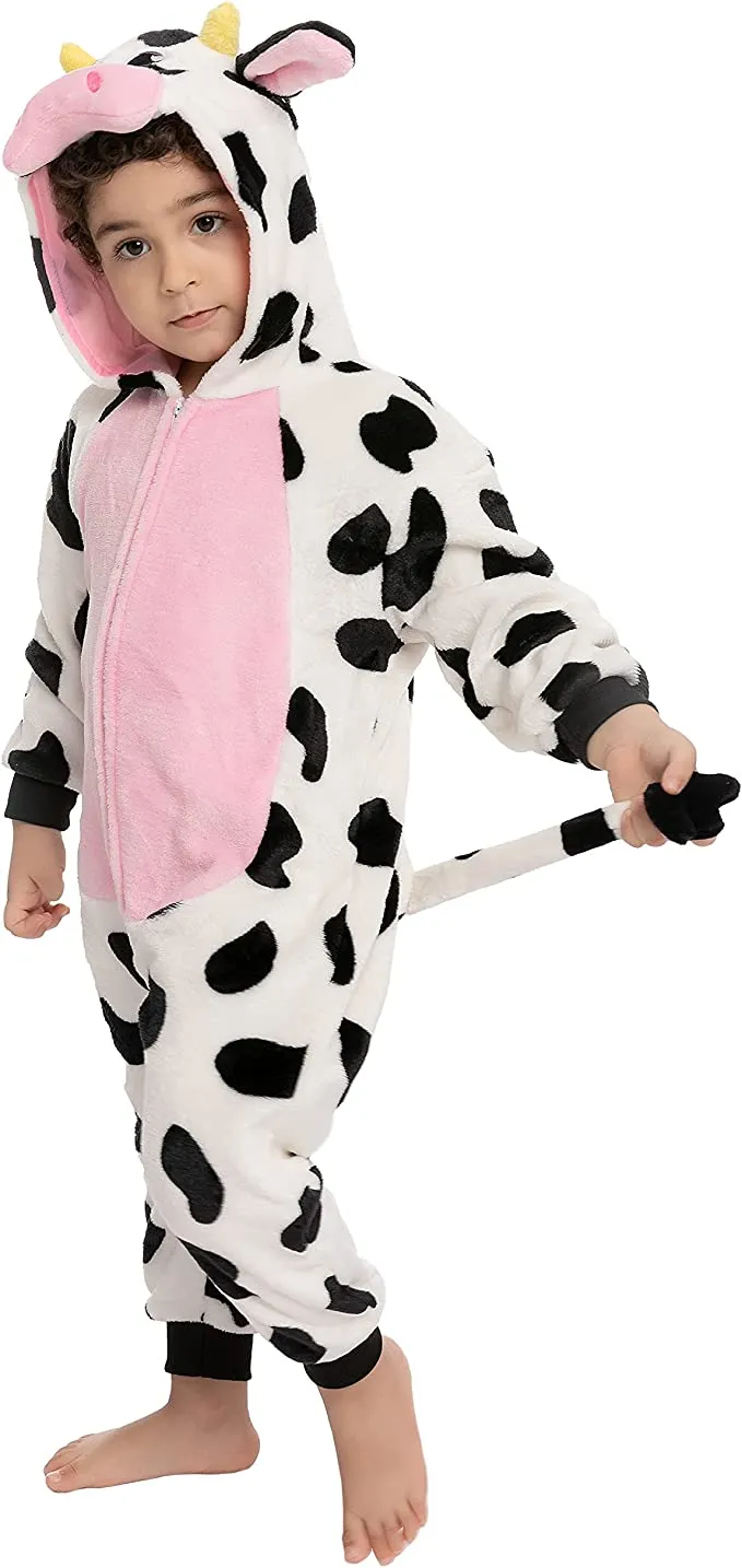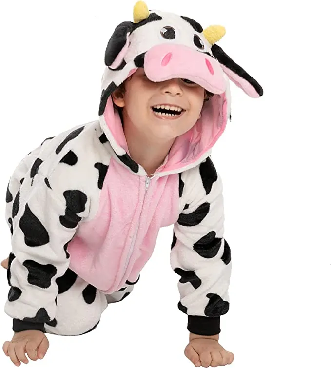 โข Super Value for Milk Cow Role Play. Great for Halloween Dress Up Parties, Festivals, Theme Party Costumes, Halloween Costume, Baby Halloween Costumes, Unisex Cuddly Cow Toddler Costume, Kids Animal Cow Pajama, and More.