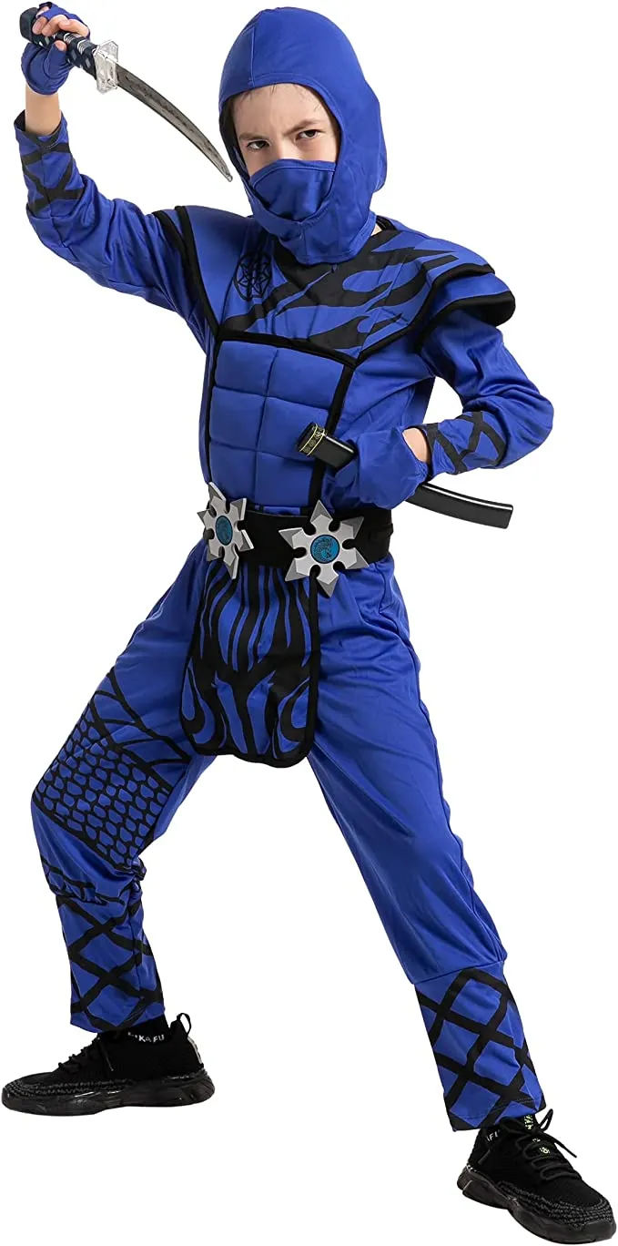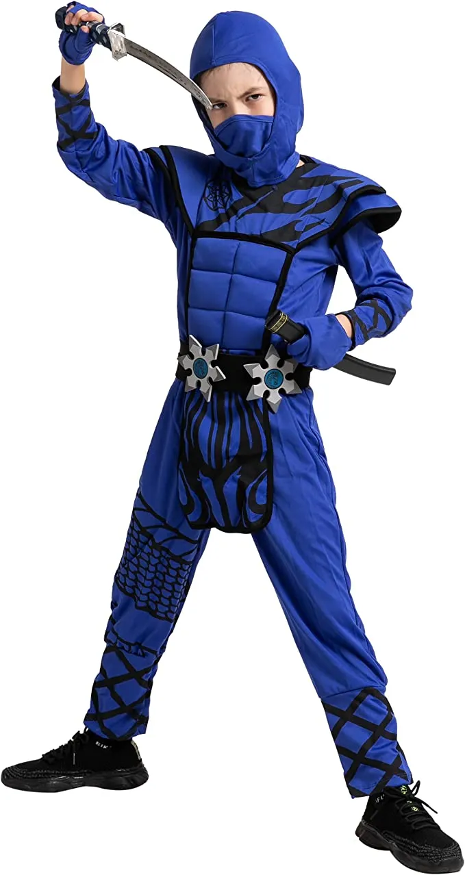 Our blue ninja costume will help you become one sneaky shadow warrior! From classic shinobi outfits to costumes, we carry a large variety of ninja outfit styles. This outfit includes 1 mask, 1 jumpsuit with hood, 1 armor, 1 belt, 1 pair of gloves, and other accessories. You can showcase your skills and pursue the path of the shinobi with our costume. Whether you want to be a good ninja or a bad ninja, we have a costume for you! Stealthy ninjas are sure to be crawling through the darkness this Halloween. We have a ninja costume for boys for that scheming little guy who has been waiting his entire life for a ninja mission. Fight off your enemies this Halloween with one of our great costumes!