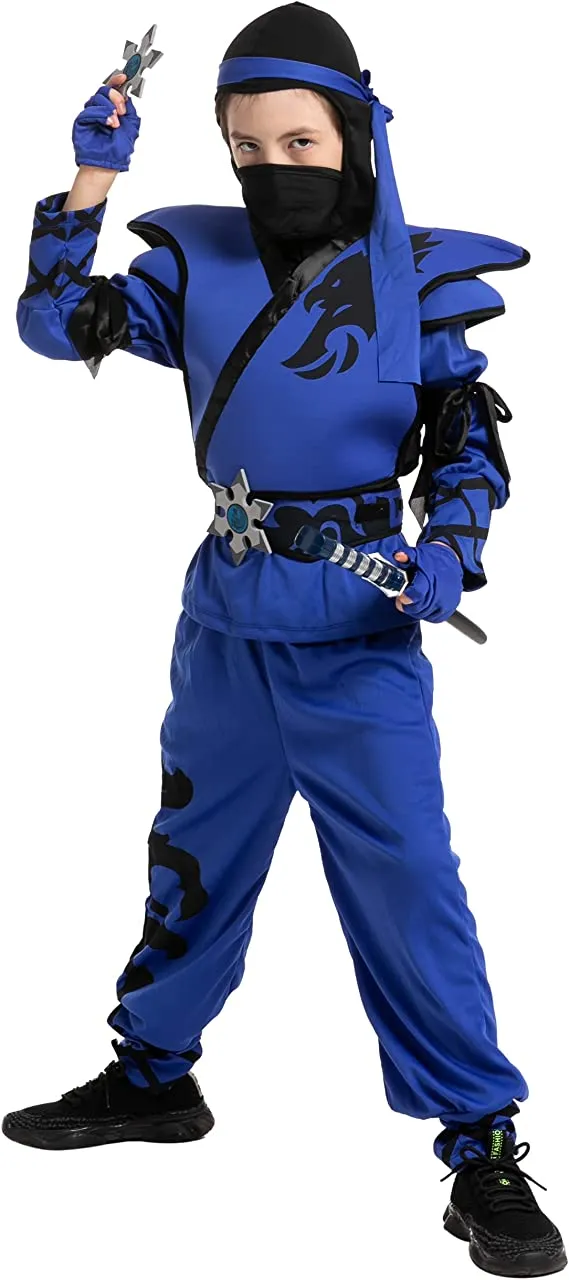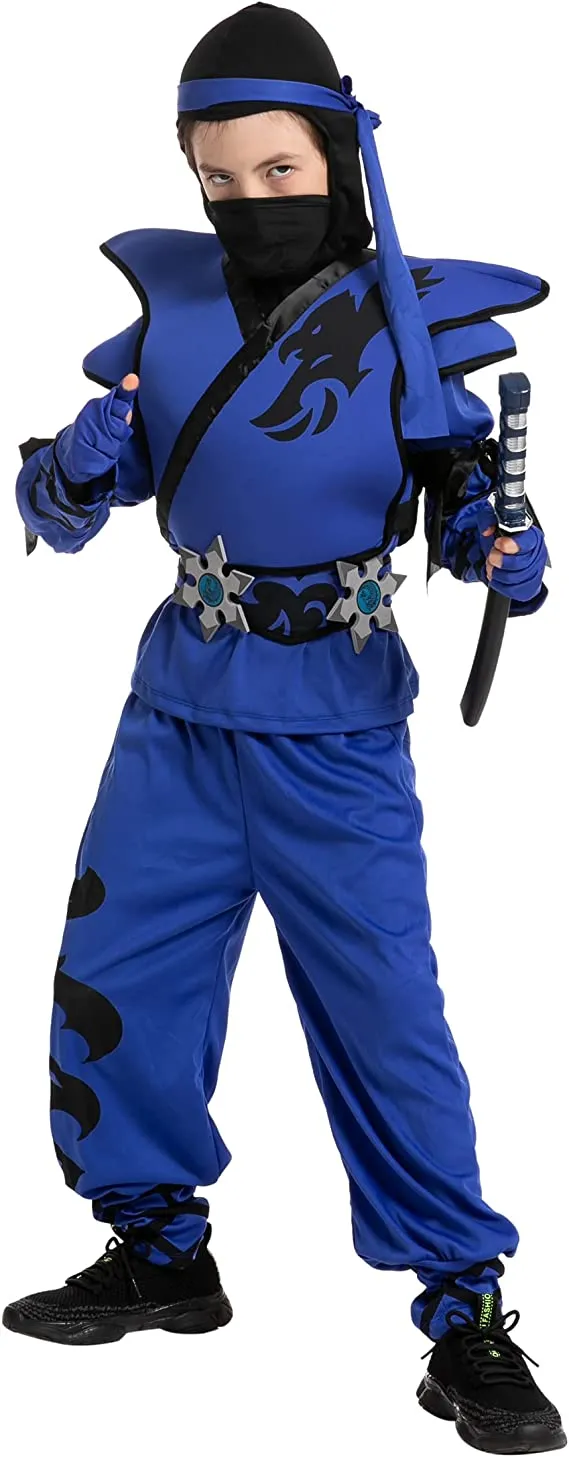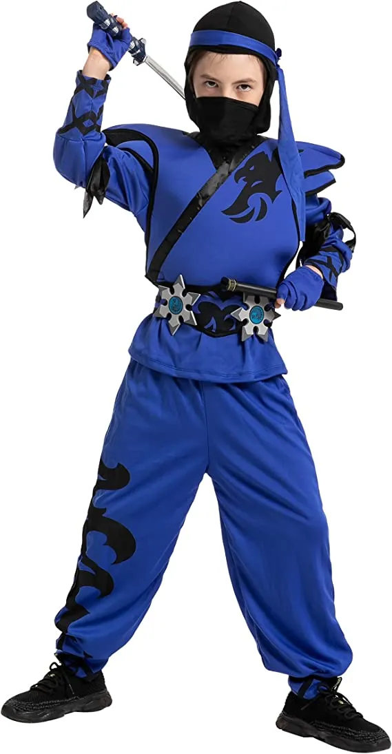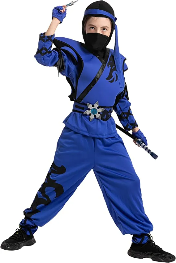 In search of the best blue ninja costume? Youβve discovered it! This vibrant take on the traditional ninja outfit is a fantastic way to make your ninja stand out and be recognized rather than being hidden in the darkness! good quality and comfortable materials. When you browse our entire selection of kid-friendly ninja accessories, you may find the ideal blade and other prop weapons. Be quick! When you order it now, youβll have it when you need it! A kidsβ ninja costume is a fantastic option for your childβs subsequent costume party or play date. The blue sweatshirt with attached leggings, the belt, and the mask are all included in this kidβs ninja costume. Gloves and a sword are not included. Great for parades, parties, Halloween, school plays, character reenactments, and other seasonal events! The boysβ ninja costume set comes with a mask, a jumpsuit with a hood, armor, a belt, a pair of gloves, a sword, and additional foam accessories.