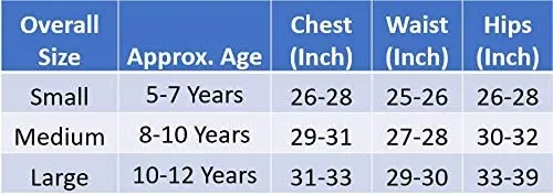 • Size: 3T (3-4 yr), Small (5-7yr), Medium (8-10yr)
