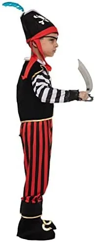 • Pirate Costume Kids comes with a Vest, Belt. Pirate Hat, Pants, a pair of shoes, compass, pirate sword, earrings, and 1 coin bag with 6 coins. Everything is included in your little pirate’s costume!