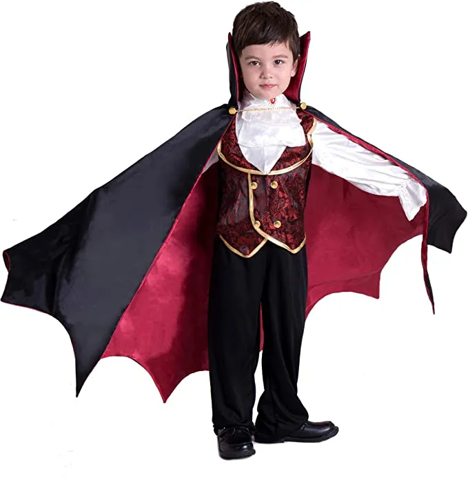 Shop boys vampire costume at Joyfy for a blood-sucking good time! It’s finally time for you to unleash your bloodthirsty ways, and our boy Halloween costumes are the perfect place to start! Our costumes for kids are the perfect way for your little one to spook everyone who crosses their path. Become a nocturnal nightmare as you drape yourself in this costume that comes with a vintage vampire vest, 1 cape with maroon collar and red lining, a medallion necklace, 1 pair of pants, and 1 vampire cane!
