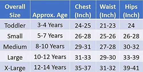 • Size: Toddler ( 3 – 4 yrs ), Small ( 5 – 7 yrs ), Medium ( 8- 10 yrs ), Large ( 10- 12 yrs ), and X-Large ( 12- 14 yrs )