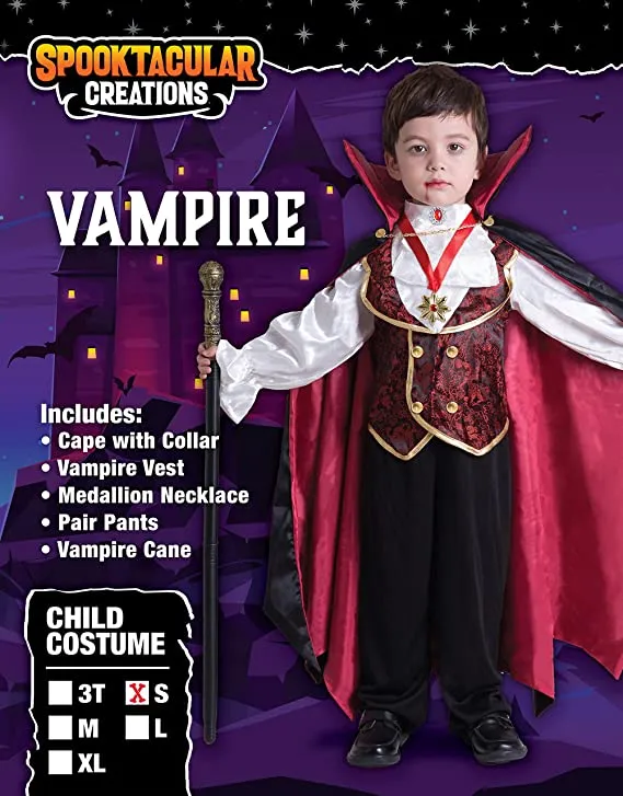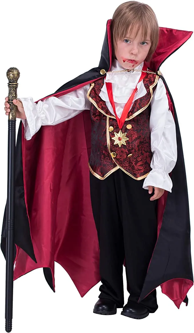 • Vampire Dracula Costume Deluxe Set for Toddler, Kid, and Teen Boys. Realistic Looking, Super Durable. Superior Quality. 100% Polyester.