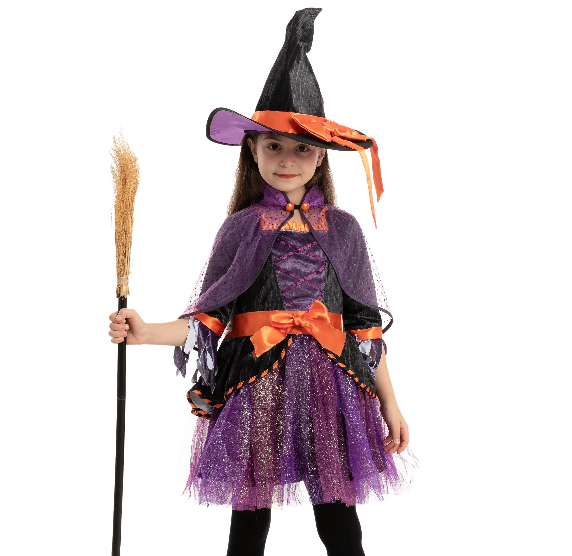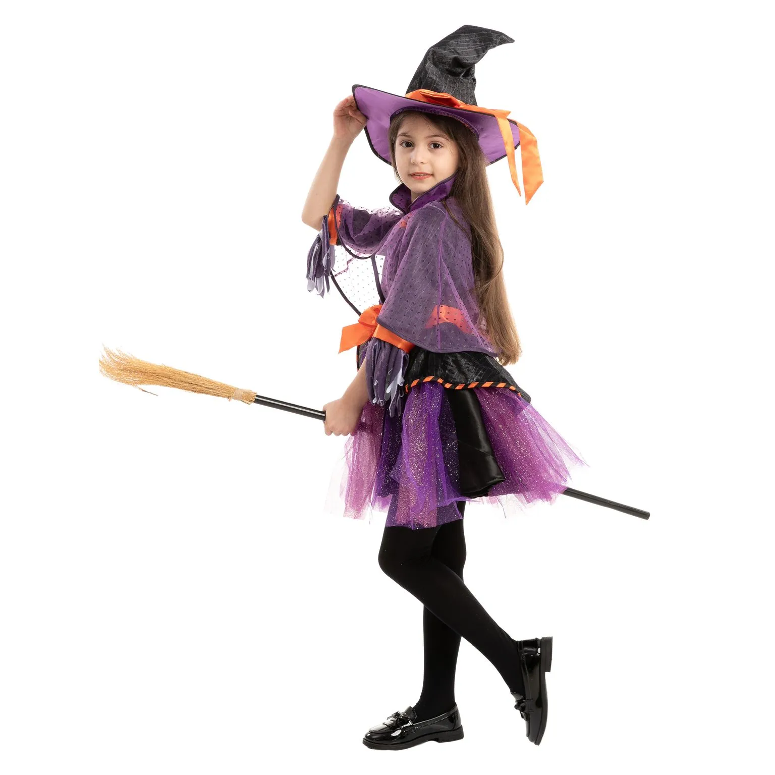 • Witch Costume for Girls includes a Witches’ Hat, Long Sleeved Dress, and a Short Cape(Boom not included)