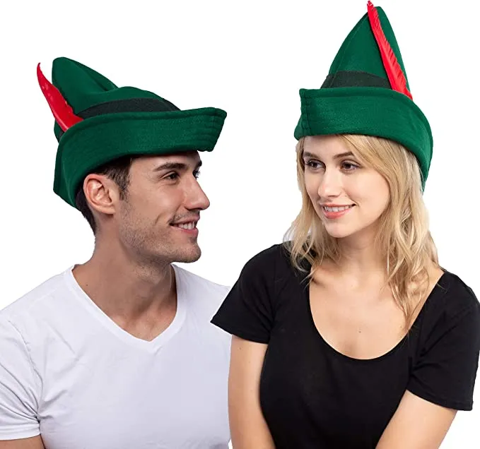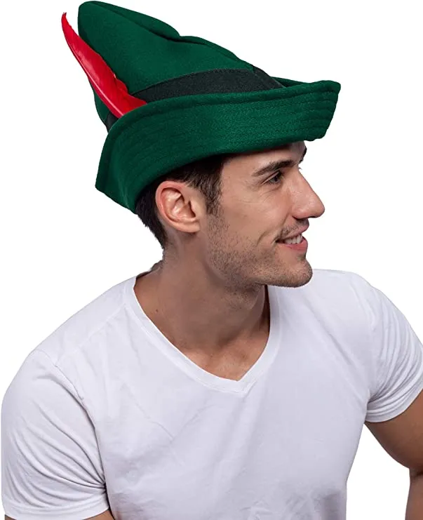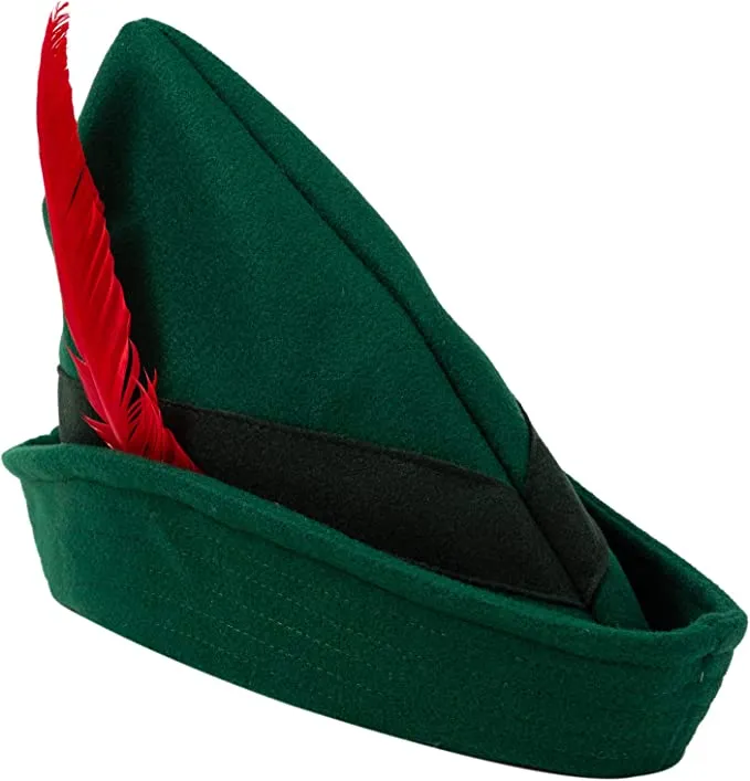β’ Felt Robin Hood Hat measures 12 inches in Width and 10 inches High with an Inside Circumference of Approximately 22 inches. One Size Fits Most Adults.