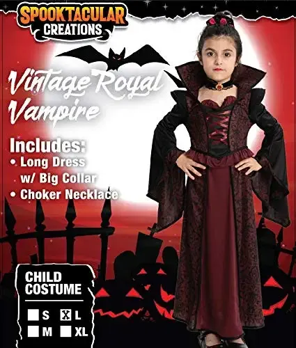 The girl vampire costumes include a long dress with a printed maroon pattern, a big collar, and a choker. Ribbon laced decorative corset on bodice Be proud of your tiny bloodsucker with our kid Halloween costumes! Halloween is the perfect time to turn your daughter into a mini monster. Theyβll have a blast dressing up as a terrifying vampire, complete with fangs, and you can assist them in perfecting their Transylvanian accent. With official Disney Vampirina clothing, she may dress up as her favorite pop culture character. Your youngsters will be ready to terrorize the neighborhood in quest of blood or candy if you add some vampire makeup. You canβt go wrong with a childrenβs costume for a creepy Halloween look that your kids will appreciate.