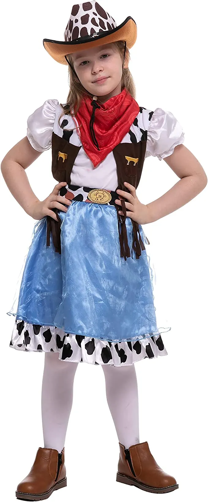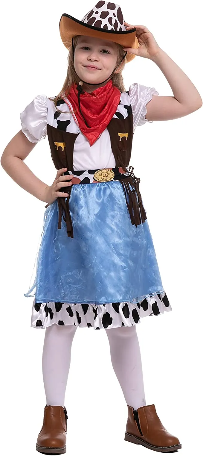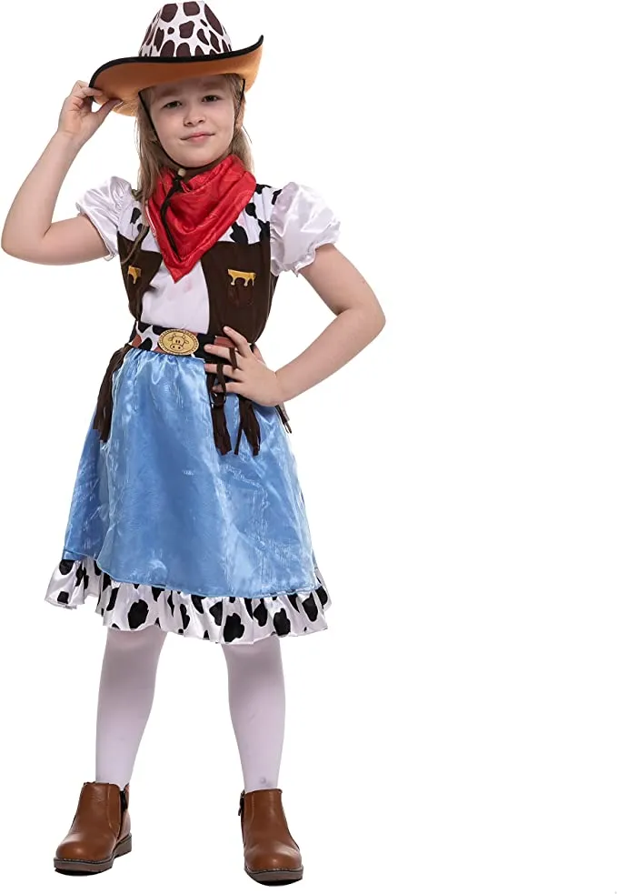 Cowgirl Outfit for Halloween Dress Up. Super durable and made of superior quality material. 100% Polyester.
