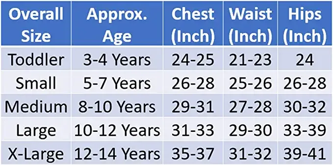 • Size: Toddler ( 3 – 4 yrs), Small ( 5 – 7 yrs), Medium ( 8- 10 yrs), Large ( 10- 12 yrs) and X Large ( 12- 14 yrs).