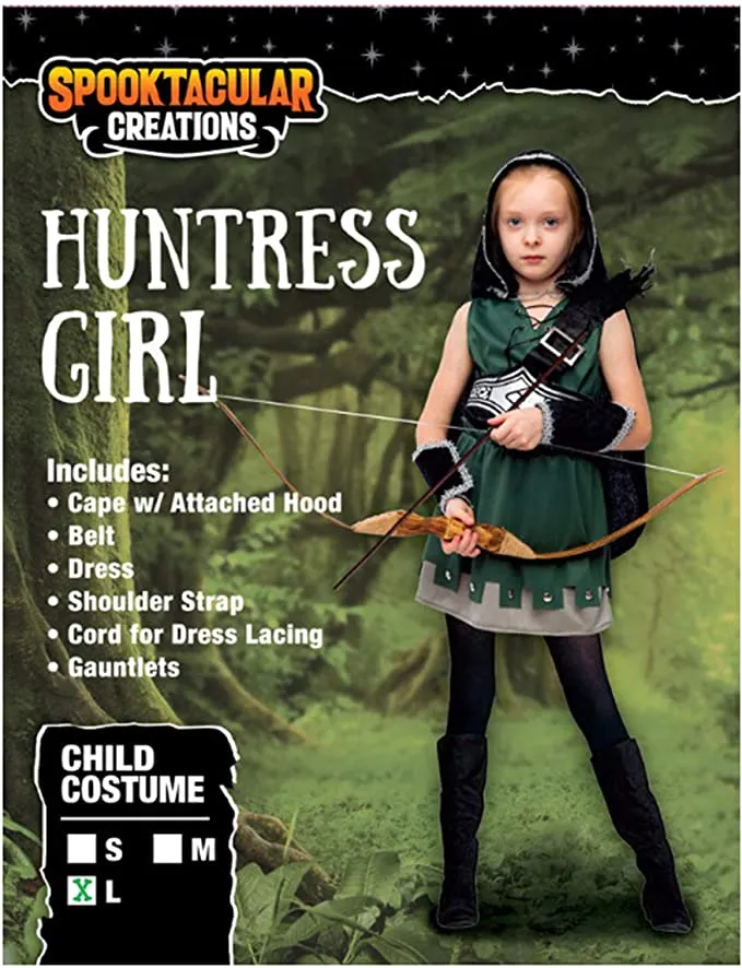This huntress costume has the following available sizes: Small (5-7 yrs.), medium (8-10 yrs.), large (10-12 yrs.), and x-large sizes are available for this costume (12-14 yrs). When in doubt, go for the bigger size. This makes sure that if your child decides to play dress-up during the holidays, they will have plenty of room to grow! If your childโs measurements lie between two sizes, you might want to think about getting them an extra size as well. This costume includes a bow and arrow for role-playing fun. When you wish to dress up as Katniss Everdeen from The Hunger Games or DC Huntress from Justice League, itโs ideal for Halloween costume parties.