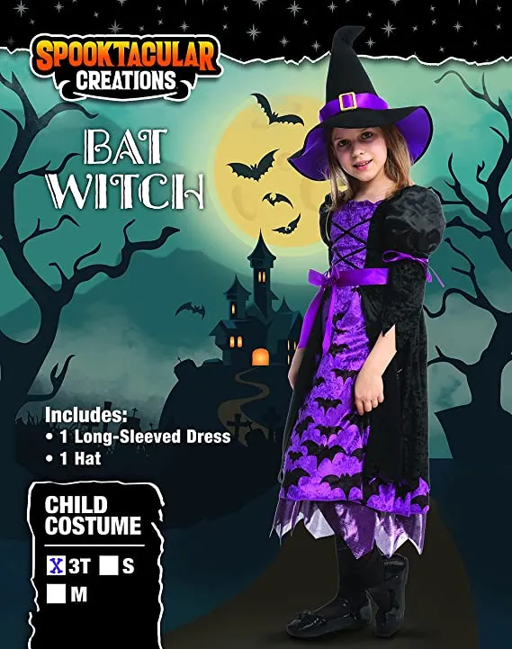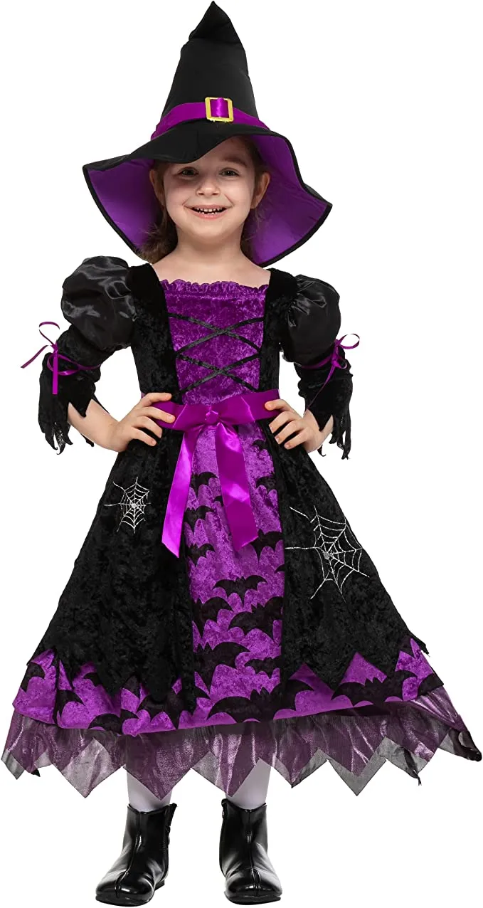 β’ Cute Witch Costume Includes Witchβs Matching Hat and a Long-Sleeved Dress.