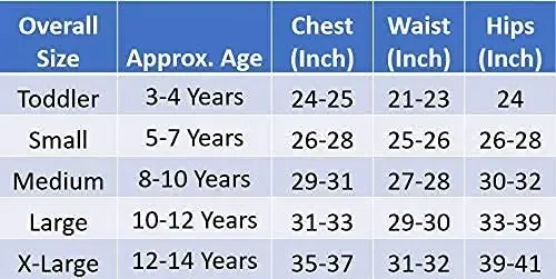 β’ Size: Toddler ( 3 β 4 yrs), Small ( 5 β 7 yrs), Medium ( 8- 10 yrs), Large ( 10- 12 yrs) and X-Large ( 12- 14 yrs).