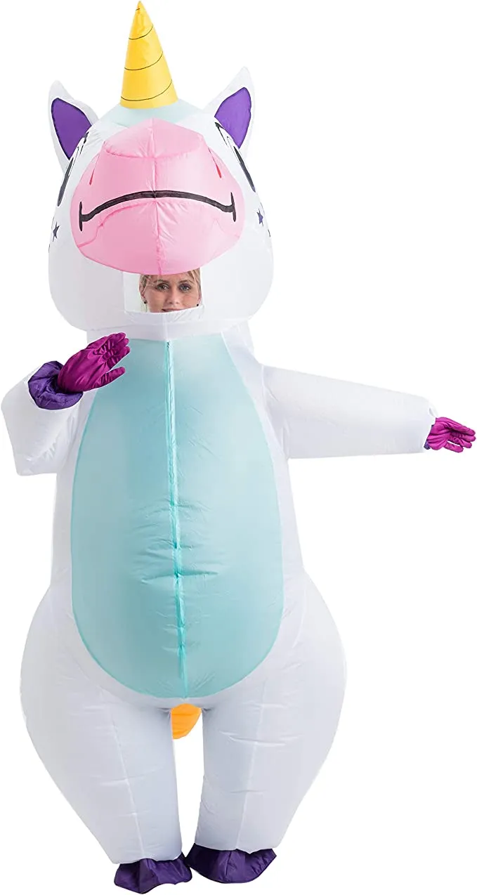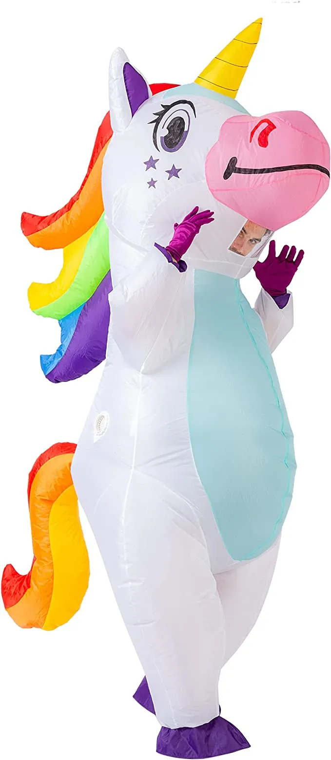 - Deluxe Version of Inflatable Full Body Unicorn Dress Costume. Adult Size. One Size Fits All.