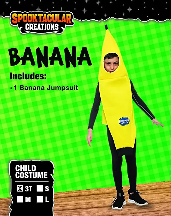 β’ Banana Costume for Kids includes 1 Unisex Banana Jumpsuit Costume Deluxe Set for Halloween Dress Up Party and Roleplay Cosplay