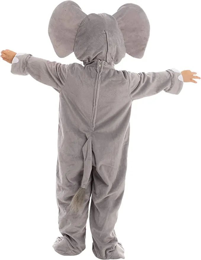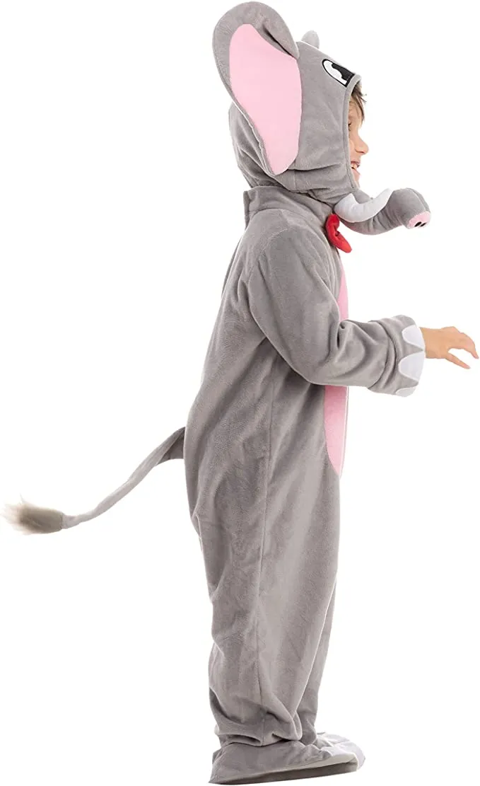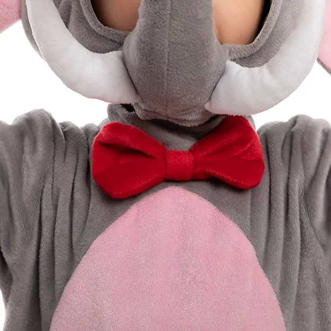 • Kids Elephant Costume Includes Hood with Ears and Trunk, Jumpsuit with tail and bow tie