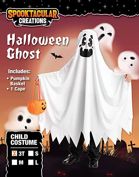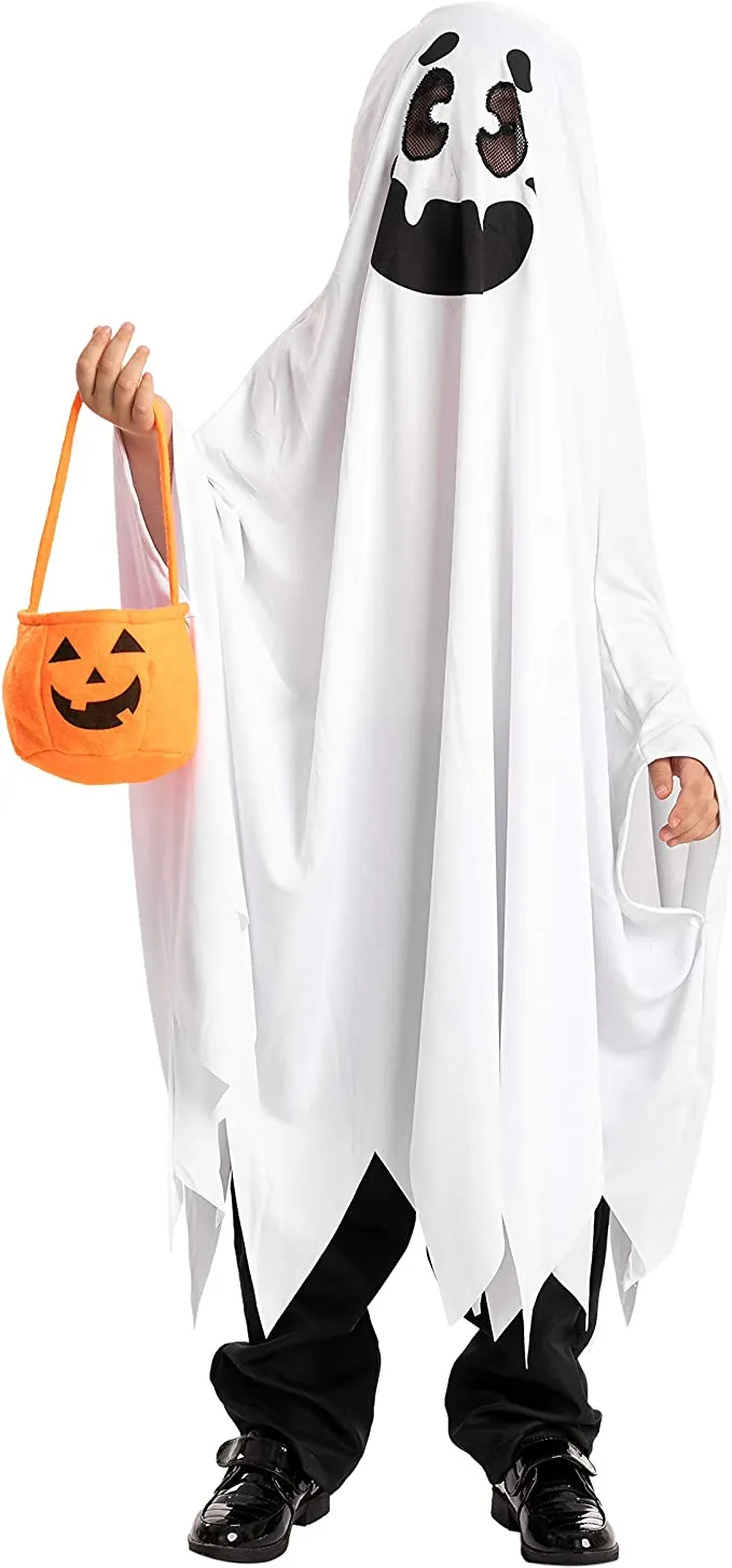 โข Ghost Halloween Costume Includes Smile Ghost Robe (1 Cape) and Spooky Pumpkin Basket
