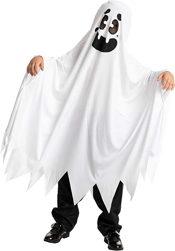 By wearing these kids ghost costumes, the other kids in the neighborhood will all want to be friends with your cute little specter, and your kiddo is sure to have collected more than enough candy to share with all of his new friends. The smiling face on this ghost costume isnโt the only thing that will make your little one stands out. They say itโs our flaws that make each of us a unique individual, right? Get your camera ready! This is one ghost that youโll be delighted to see in your photo albums, years from now when you want to look back at the good old days. Seeing your kiddo wearing this smiling phantomโs face and knowing that the smile under the costume is even bigger will bring joy to your heart.