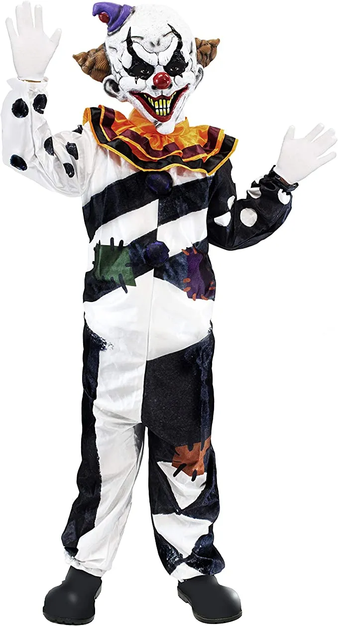 The Halloween Killer Clown Costume is a fantastic option for your youngster’s forthcoming major celebration! This kids halloween costume includes a Full-Head Mask with Little Hat and a long-sleeved jumpsuit with an attached ruffle collar! The jumpsuit is easily opened at the crotch and includes a connected back zipper. When dressed in this costume, your youngster can anticipate frightening both friends and complete strangers when trick-or-treating. The set comes with a Full-Head Mask with Little Hat and a long-sleeved jumpsuit with an attached ruffle collar!