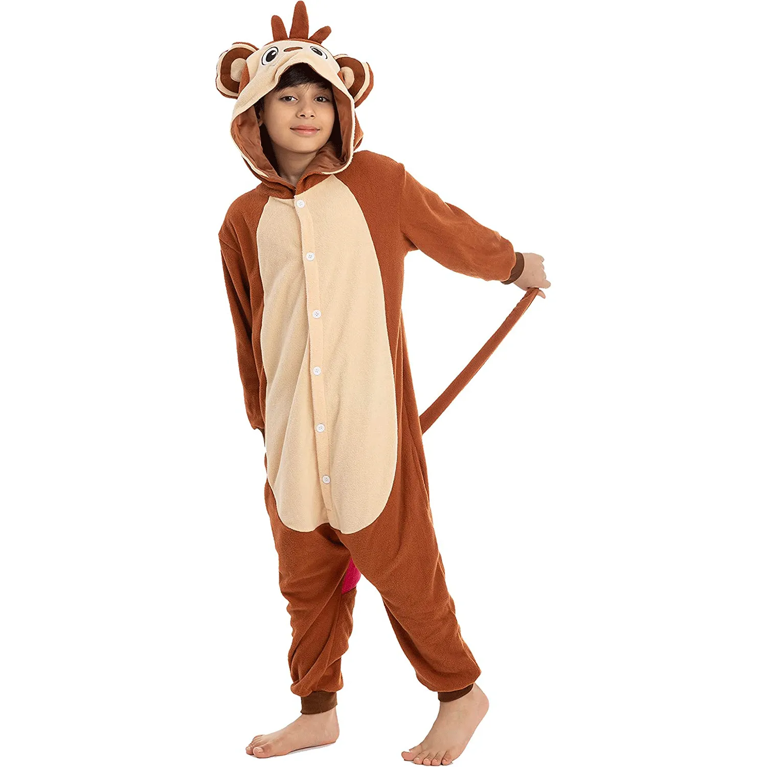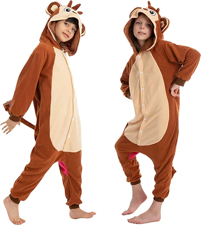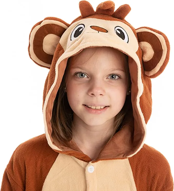 β’ Monkey Onesie Pajamas come with One Piece Plush Cosplay Animal Costume Onesie. Child Size. Made with High-Quality Plush Fleece Materials.