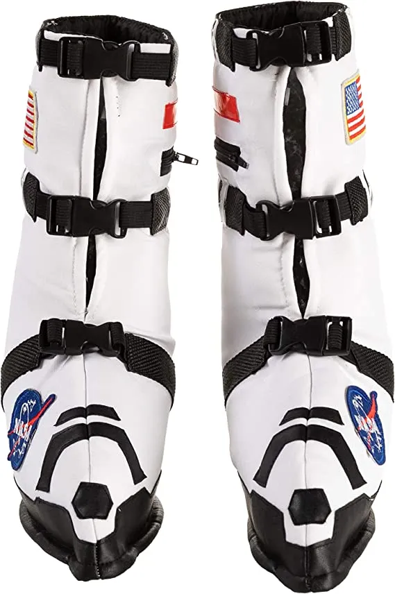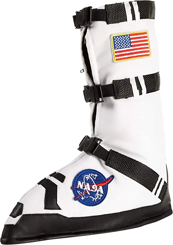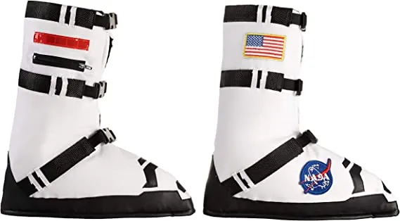 • Your Young Astronauts can now add moonwalking to their moon mission. Complete your kid’s costume with these official-looking NASA Space Boots. Now they can blast off to outer space and beyond. Small covers shoe up to 7″, and Medium up to 9″