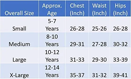 • Size: Small (5-7yr), Medium (8-10yr) Large (10-12 yr) X-Large(12-14 yr).