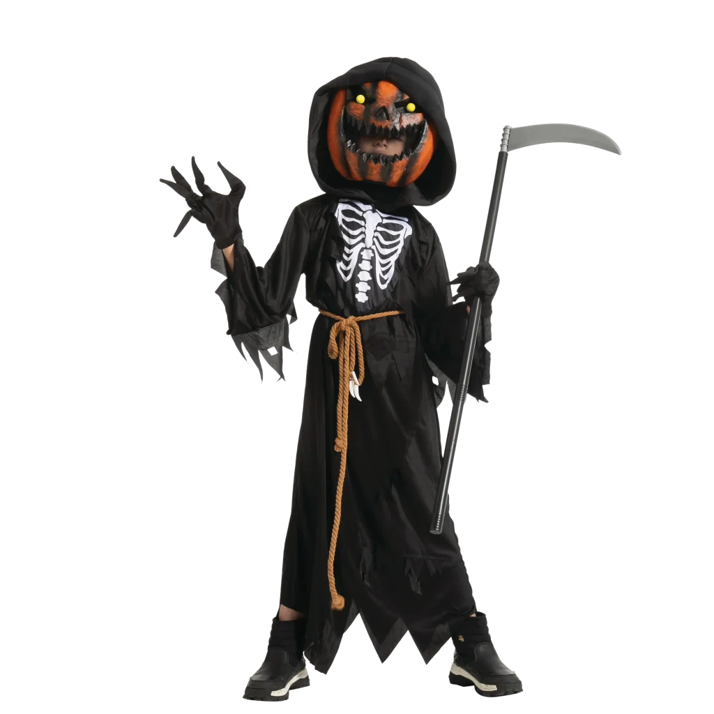 The reaper pumpkin costume comes with everything you need to give your kid the ideal scarecrow appearance. The pumpkin head bobble will make you the most well-liked child at the Halloween party and is a fantastic addition to your costume. You can also wear it during the West role play or as part of your family gathering activity. The ideal outfit for your kid’s upcoming Halloween celebration! Kids who enjoy The Wizard of Oz, Hocus Pocus, or any other spooky film or television program will love this costume. Boys’ scarecrow costumes are available in small (5-7 years), medium (8–10 years), and big sizes (10–12 yrs.).