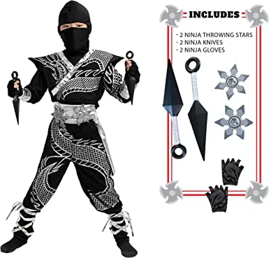 Dragon ninja costume for boys is ready to put some martial arts action and adventure into their Halloween. Whatever your little ninja has planned, he will have a comfortable and fun kids Halloween costume that is cryptic and mysterious thanks to a wide range of styles, colors, and attitudes. Ninjas use their concealed stars to slay enemies before they even have a chance to react! Of course, we canβt start you off with a real set of ninja stars, or even a set of simple kunai. You should start with something a little safer, like these toy ninja stars to add to your ninja Halloween costume.
