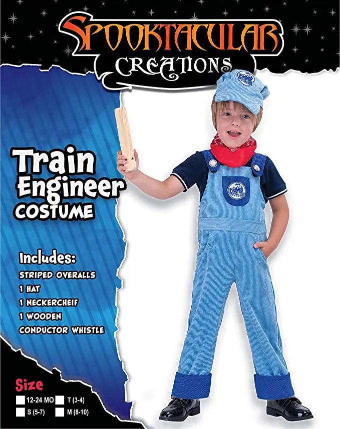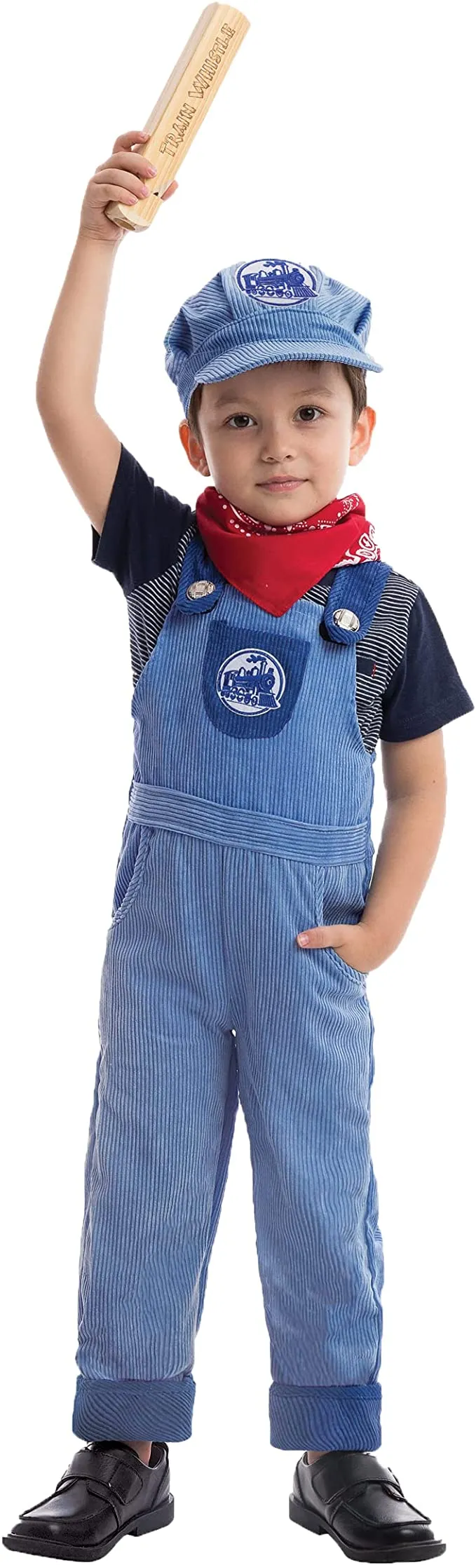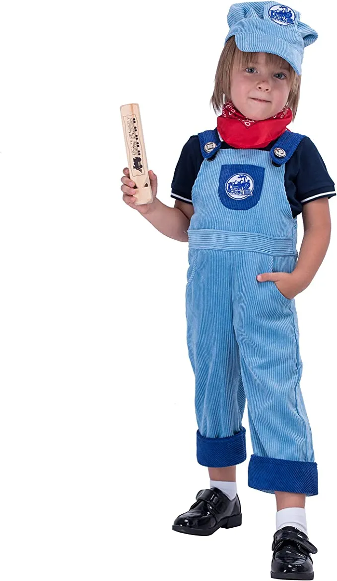 With this train engineer costume, your youngster will be the center of attention as the βgenuine dealβ train engineer for Halloween! All the essential components for a fantastic costume are included in this replica polyester outfit. A striped overalls top with a belt, hat, whistle, and red neckerchief are all included in the Train Conductor Overalls Deluxe Set. The overalls contain straps that may be adjusted at the ankles and front pockets. For a secure fit, the hat incorporates an elastic band.